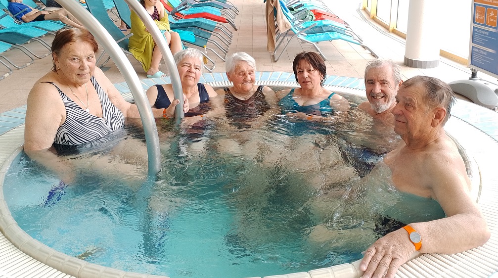 pozvali sme ďalších dôchodcov z obce, ktorí prejavili záujem o kúpanie. Počas troch hodín kúpania v teplých bazénoch a vírivkách, sme si dostatočne vyhriali svoje telá a poniektorí si aj pekne zaplávali. Zaujímavosťou bola návšteva bazénu s „morskými“ vlnami, kde sme si užili trochu adrenalínu.